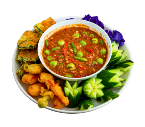 Main ingredients: Shrimp paste, chili, garlic, lime, assorted vegetables (eggplant, long beans, cucumber, cabbage)